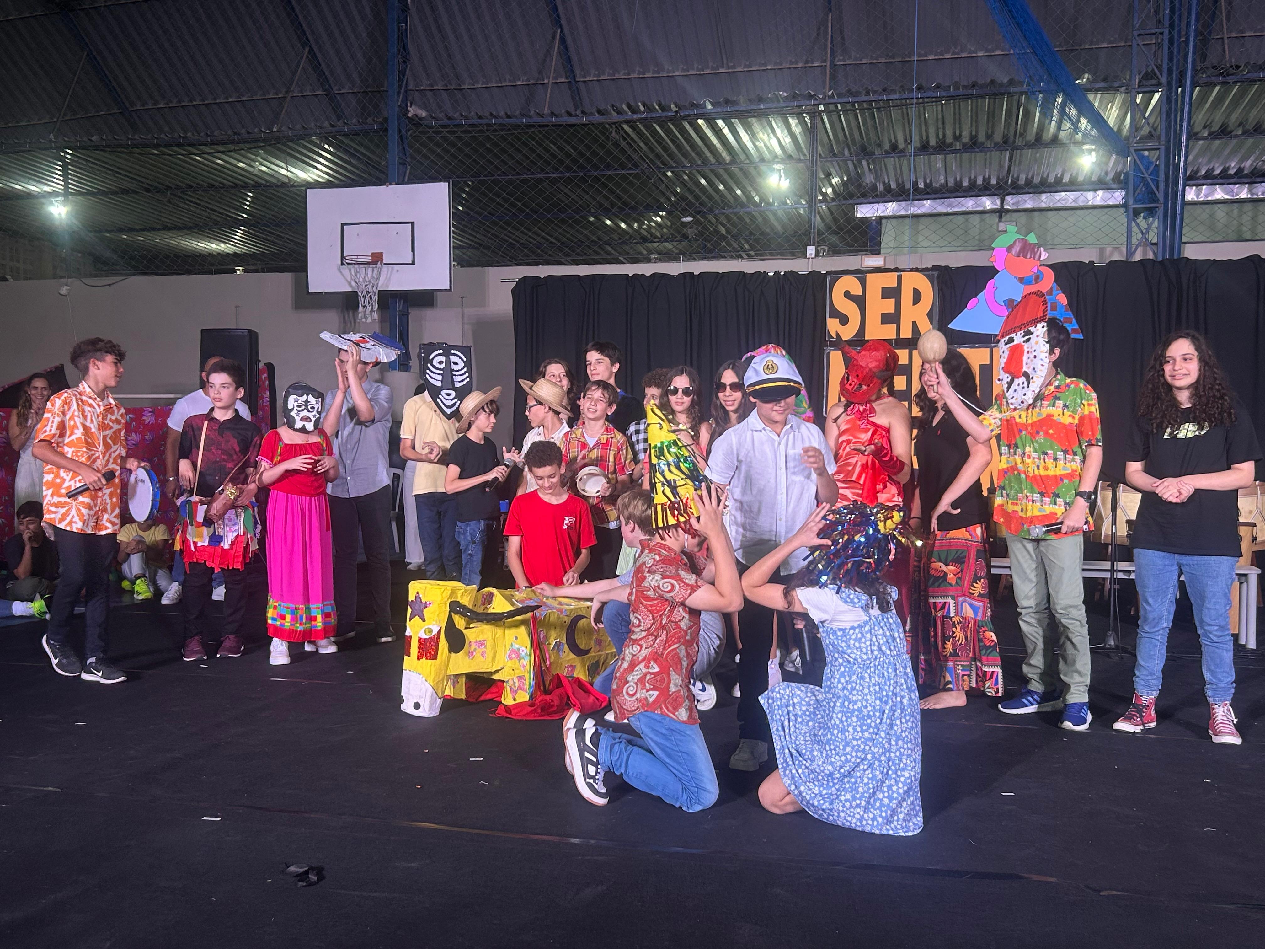 Em uma celebração marcada por cor, ritmo e significado, nossos(as) adolescentes deram vida à cultura pernambucana, trazendo para o palco caboclinhos, caboclos de lança e o cavalo-marinho, além de explorarem mitos egípcios e indígenas em performances cheias de simbolismo e sensibilidade.